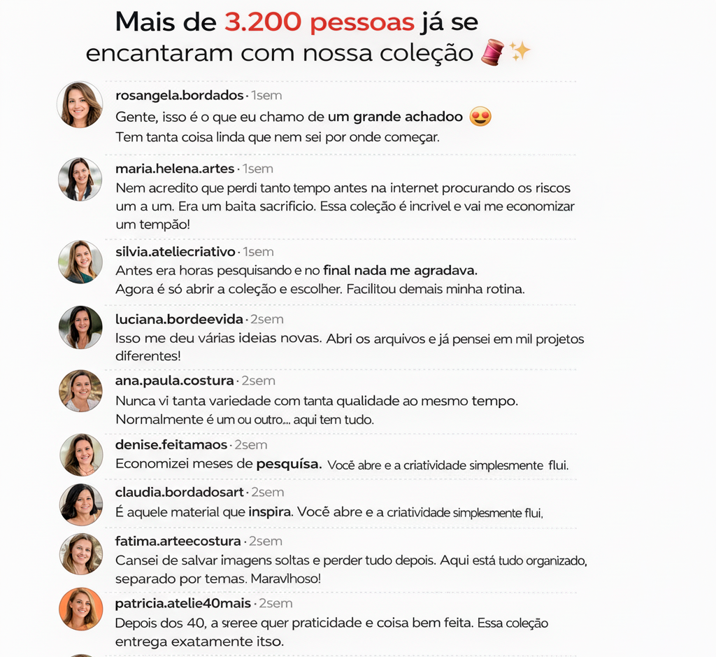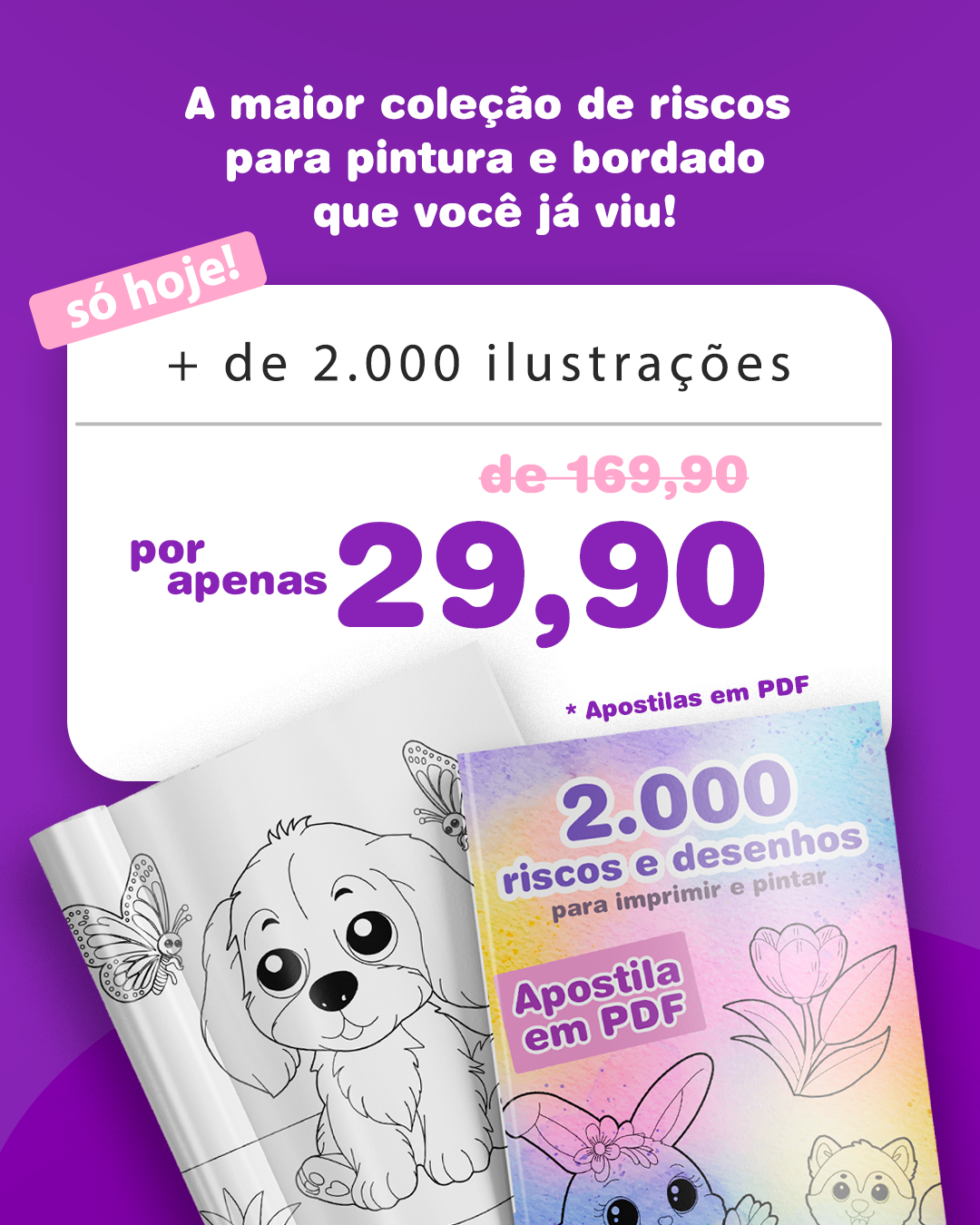 Com a Coleção Riscos para Pintura e Bordado, isso acabou: tudo pronto, organizado e fácil de aplicar. Mais tempo criando, menos tempo procurando.